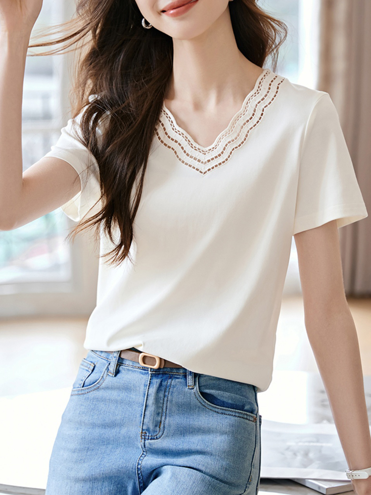 Elegant hollowed-out lace pullover shirt