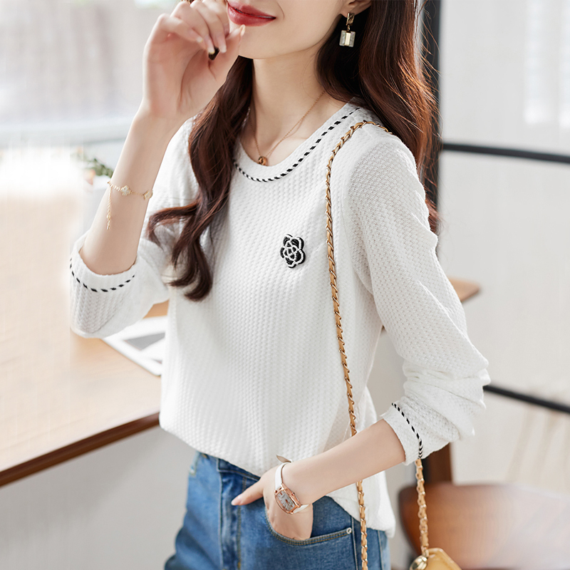 White camellia pattern sweater t-shirt