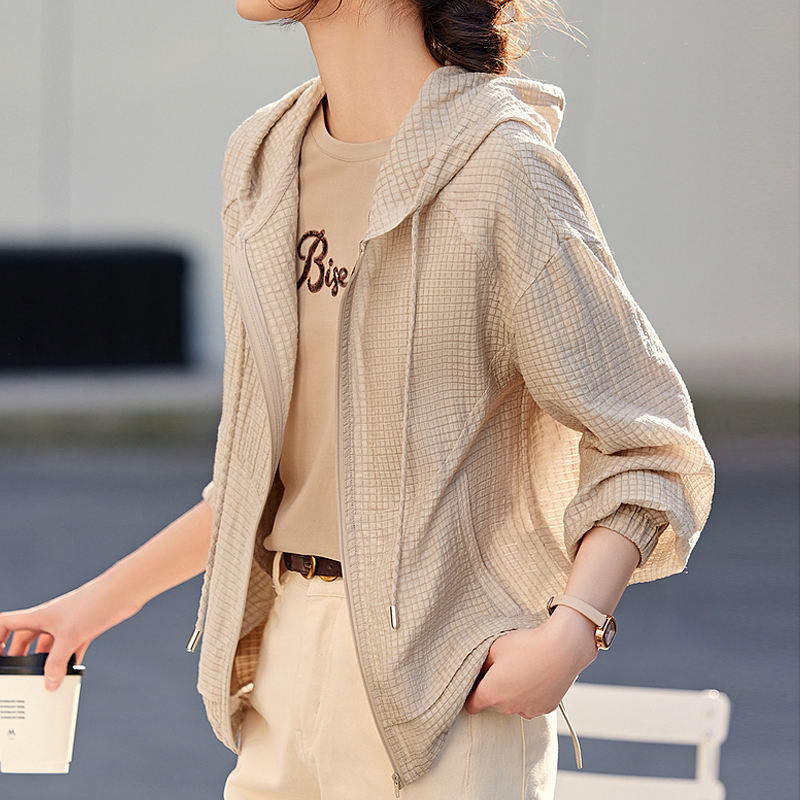 Texture checked hooded summer sunscreen thin coat