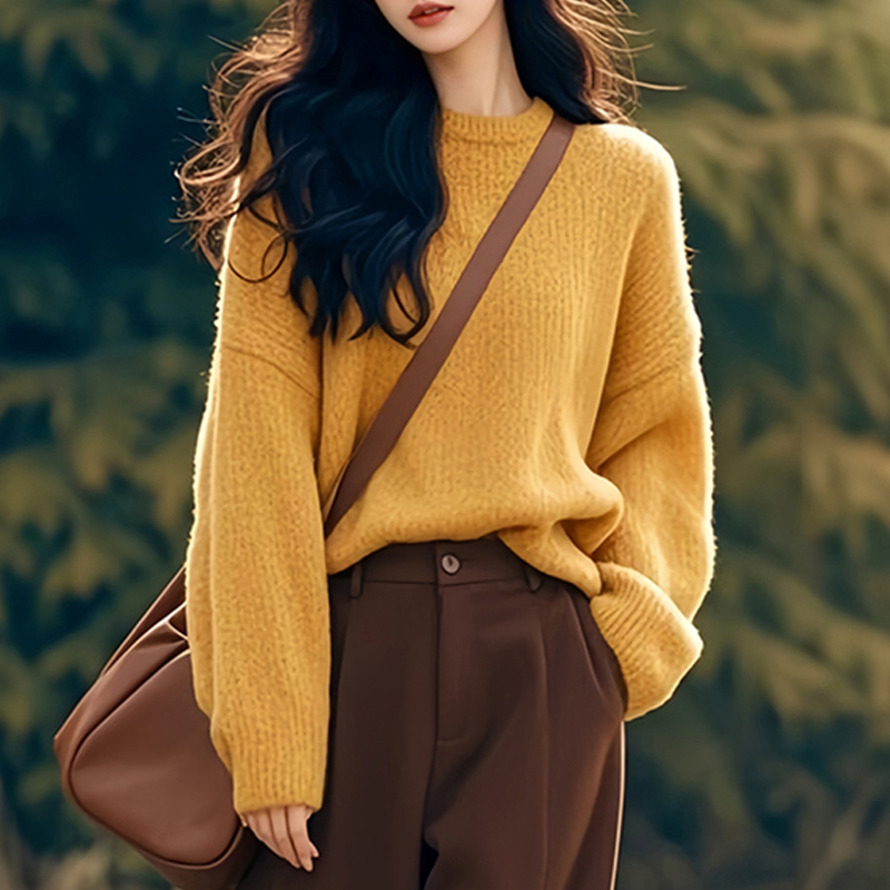 Lazy style with shoulder sleeves loose yellow pullover sweater