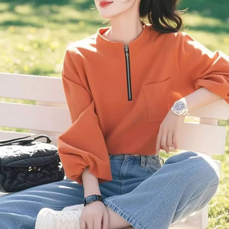 New style orange zippered spring and autumn women's shirt