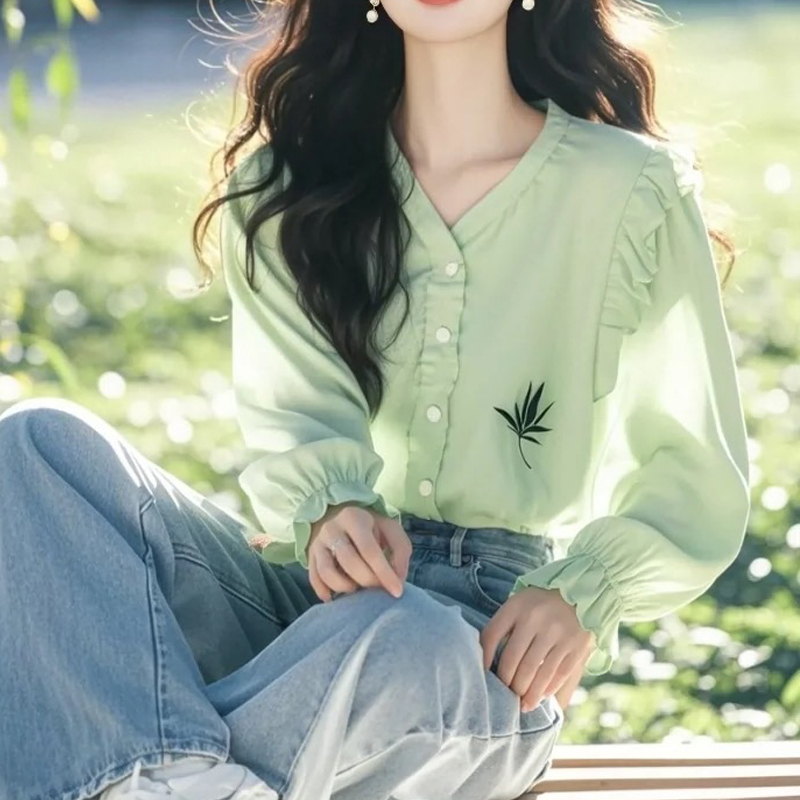 Design sensitive lace decorated long-sleeved blouse