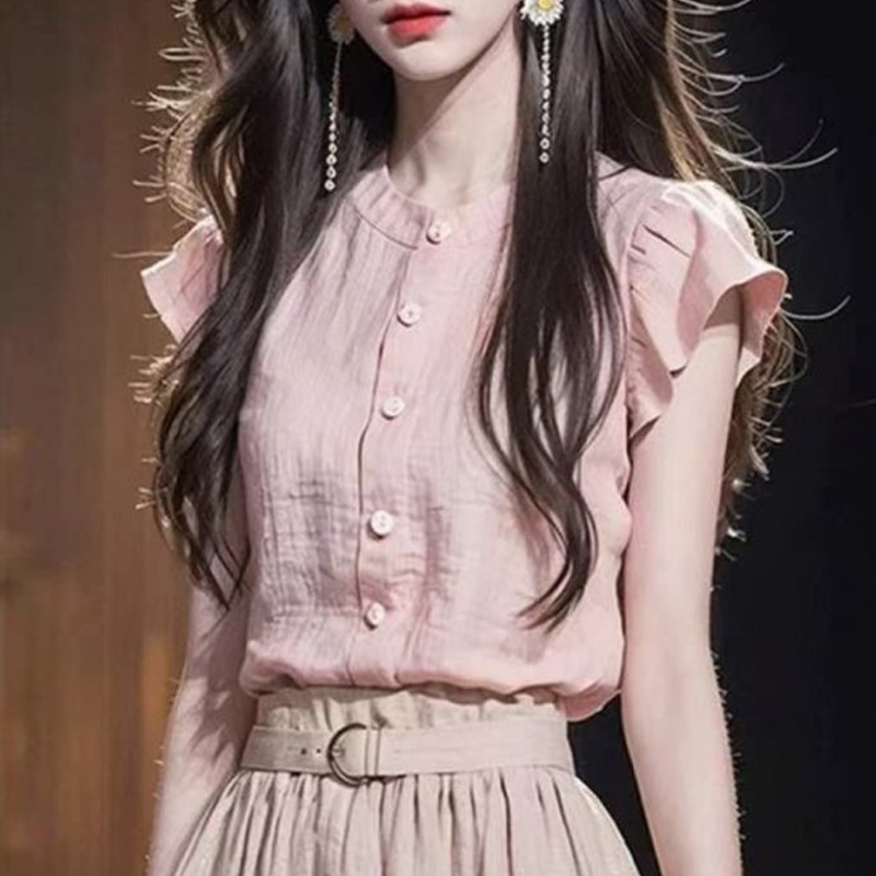 Pink fresh summer new beautiful short-sleeved women's shirt