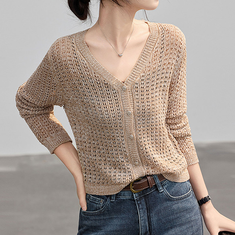 Loose hollowed-out knitted blouse pullover summer blouse