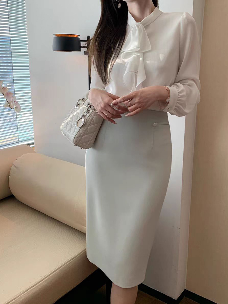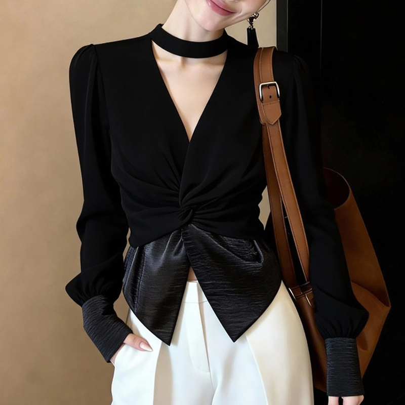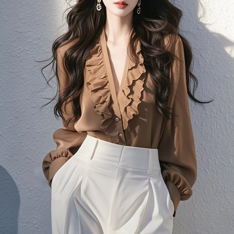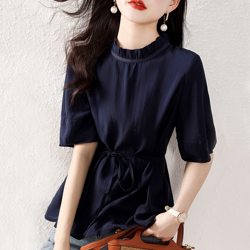 Elegant ruffled silk draped in gentle style pullover sleeves women's shirt