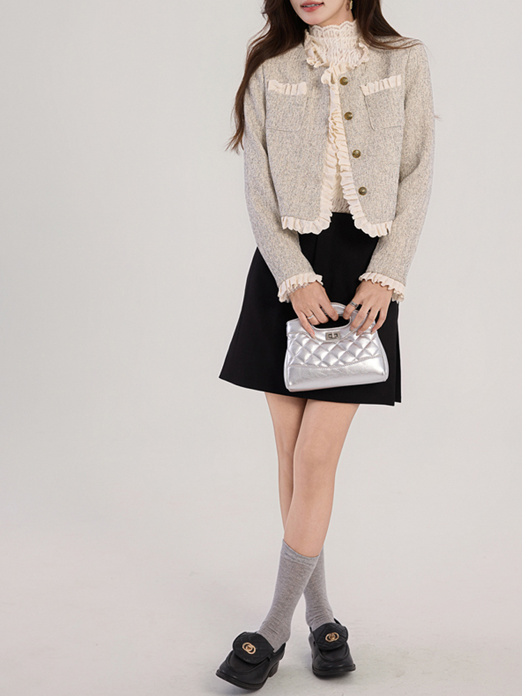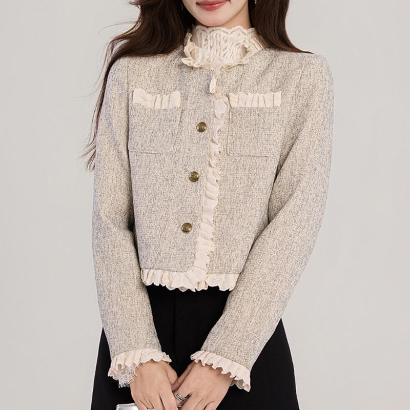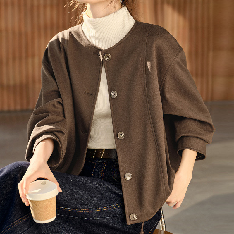 Autumn and winter contrasting color short top with vertical collar casual new women's coat