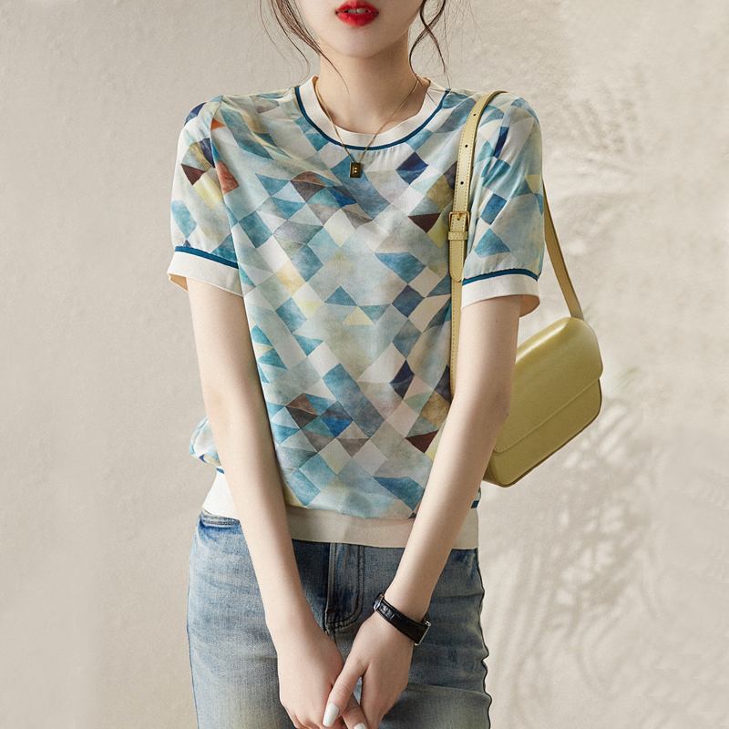 Summer refreshing geometric printed short-sleeved women's t-shirt