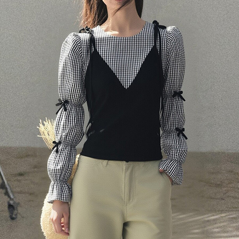 Vintage Wenqing style new style loose checked sleeve women's shirt