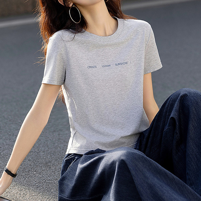 Short summer gray letter pattern cotton short-sleeved women's t-shirt