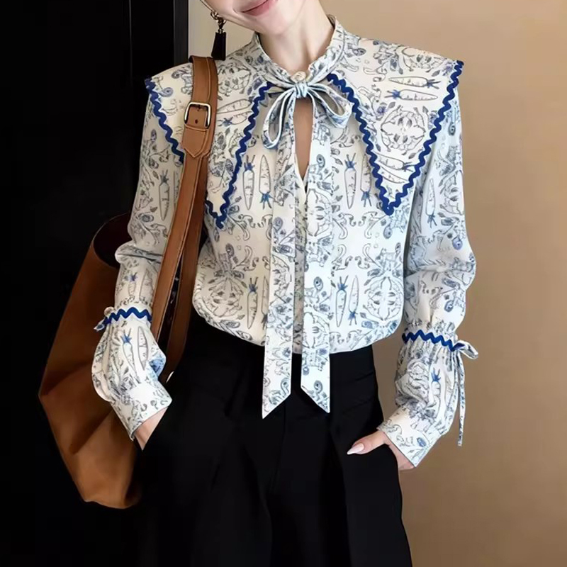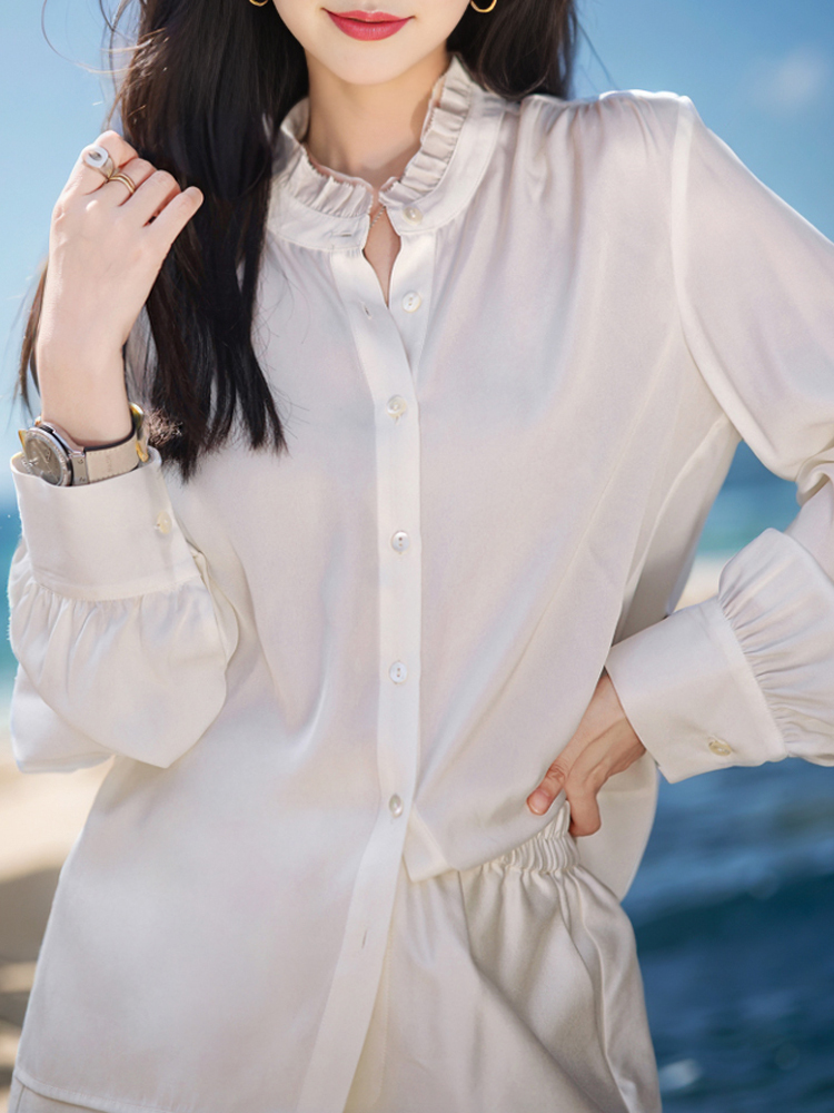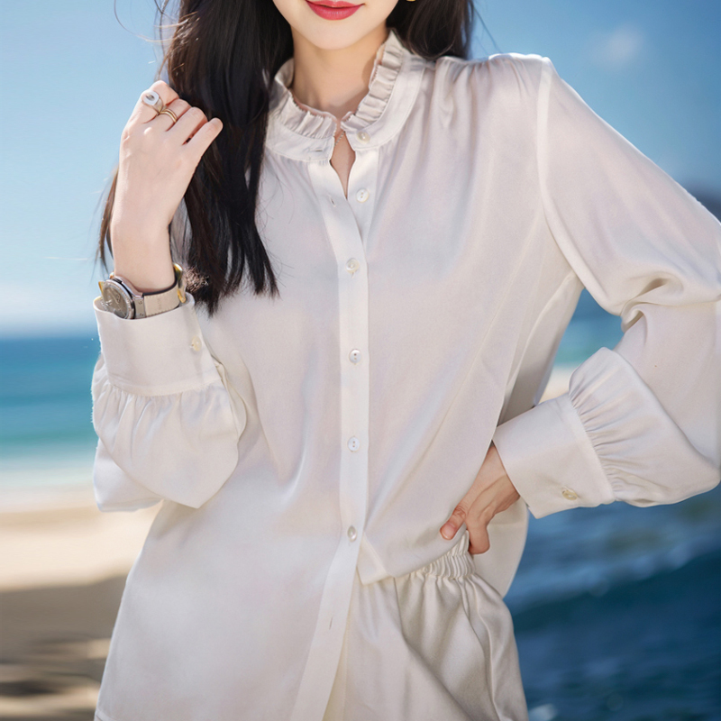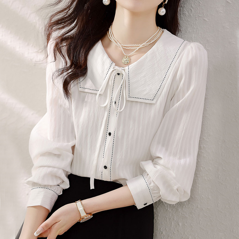 Age-reducing collar with ruffles loose white sleeve women's shirt