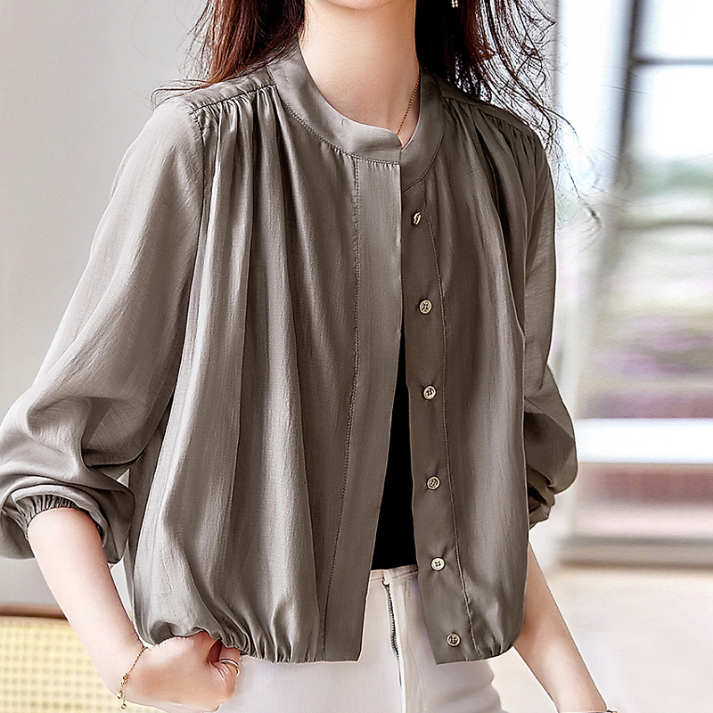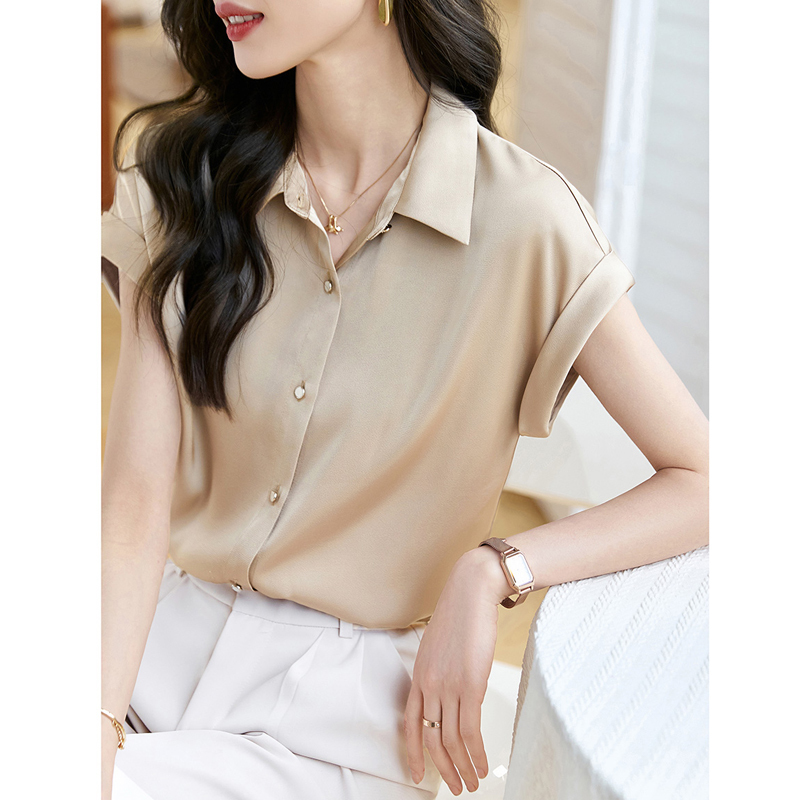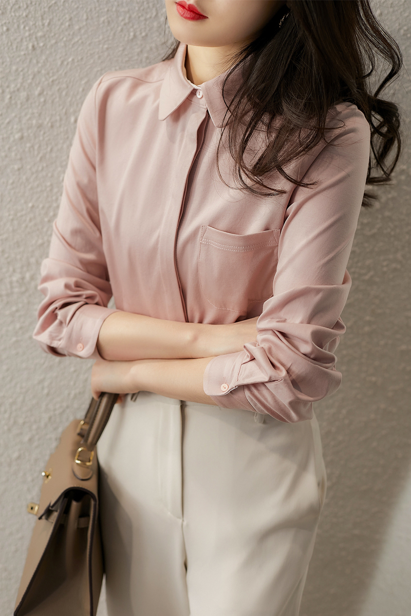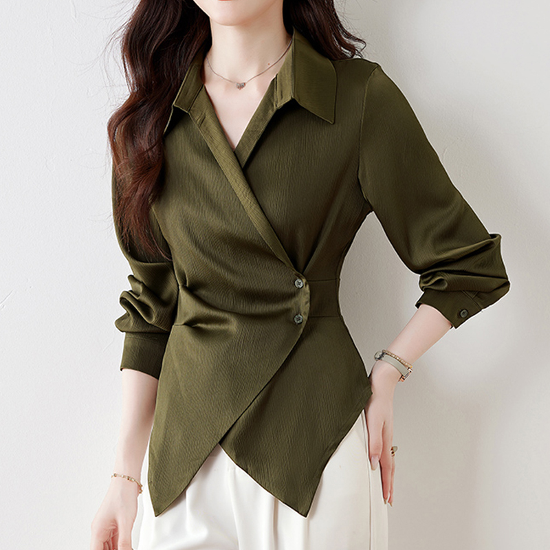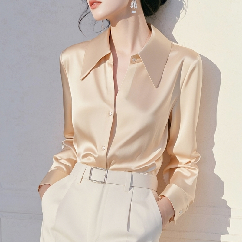 Champagne elegant pointed collar and slim waist sleeves women's shirt