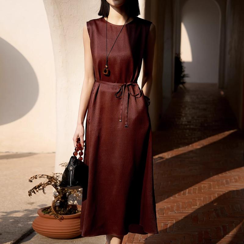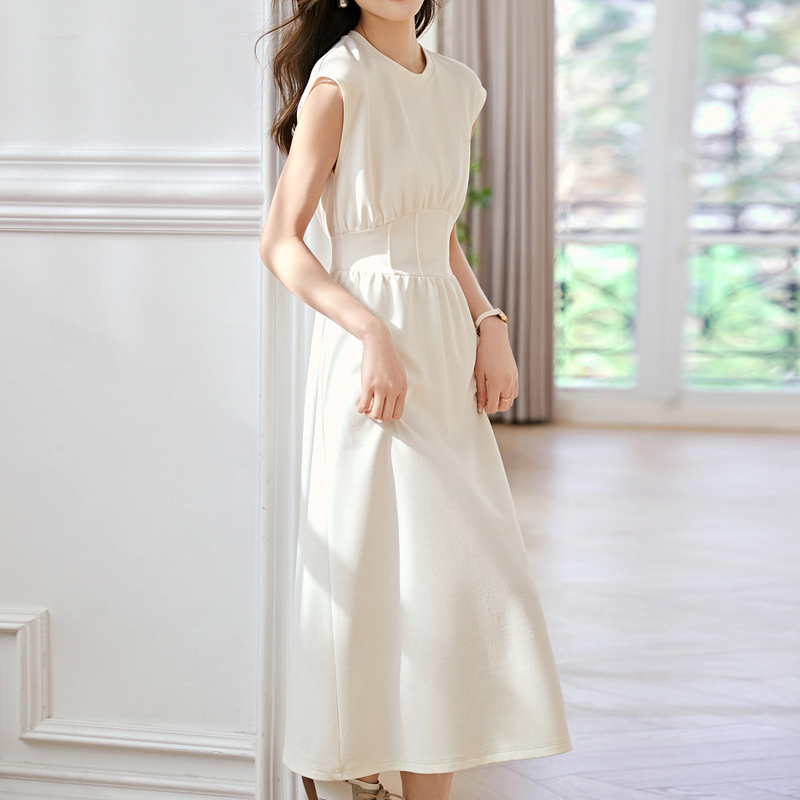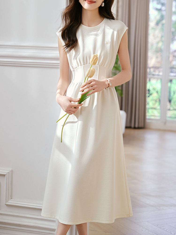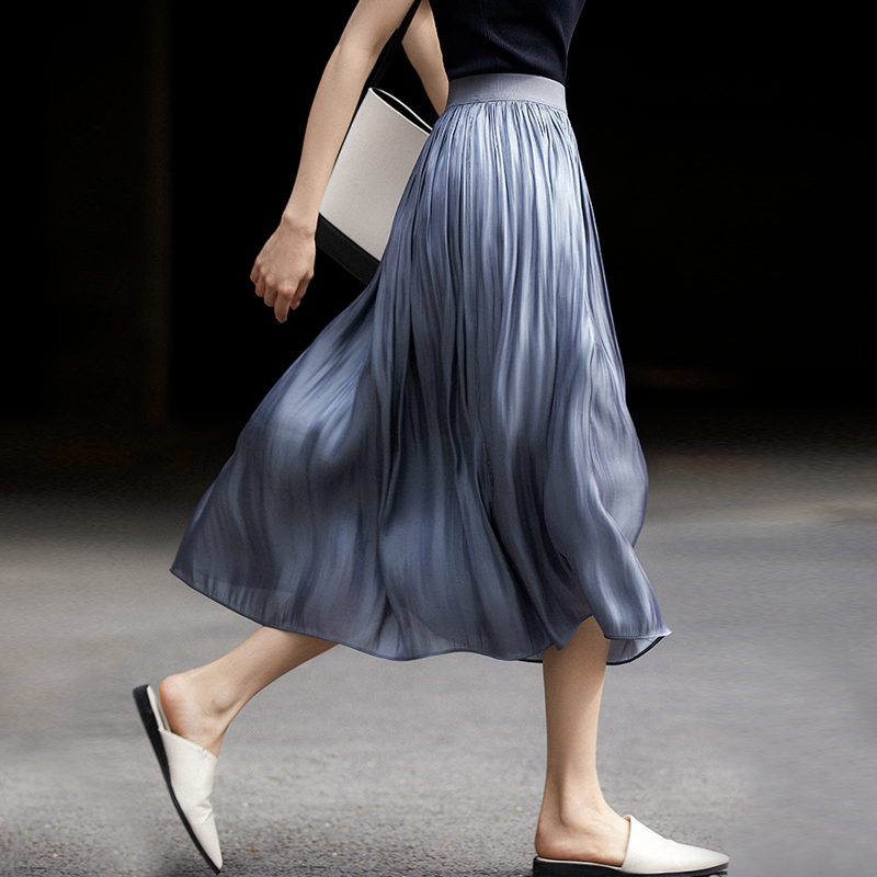 Loose waist, medium and long style, bright feeling, medium length skirt