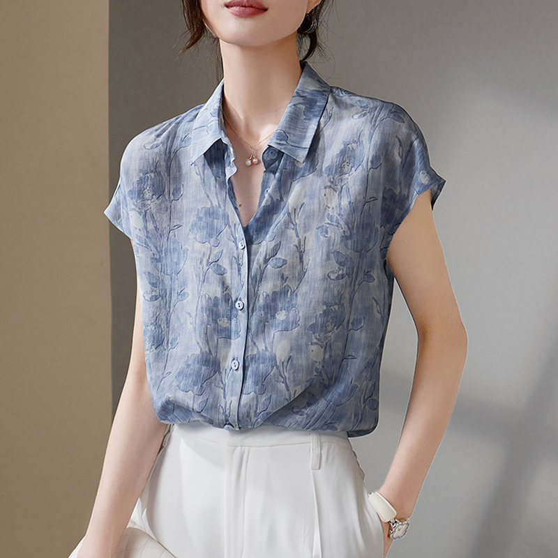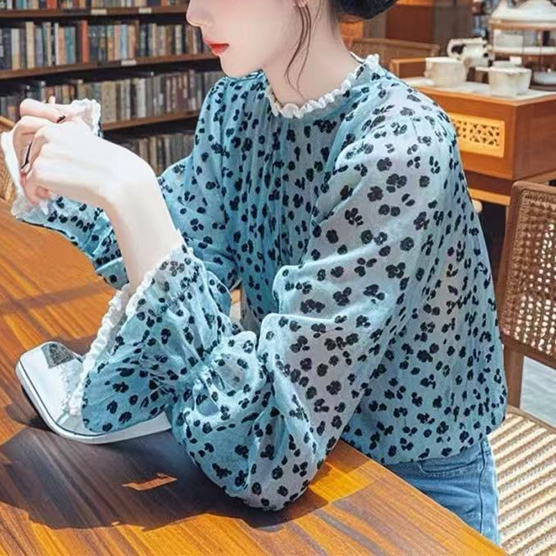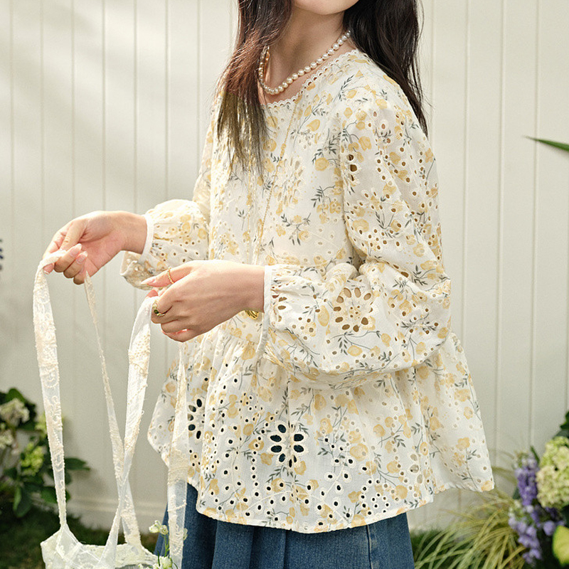 New style light luxury atmosphere printed lace age-reducing sleeves women's shirt