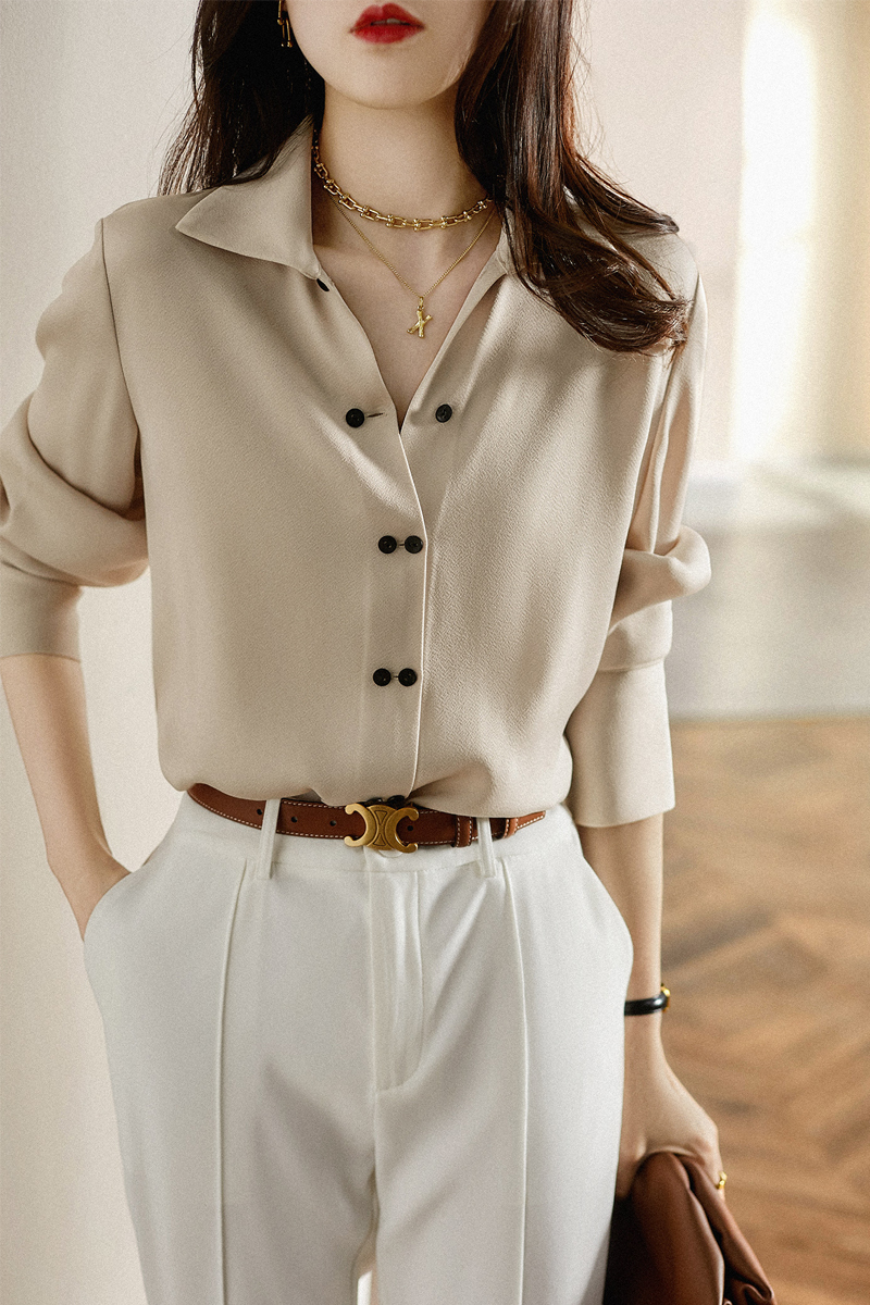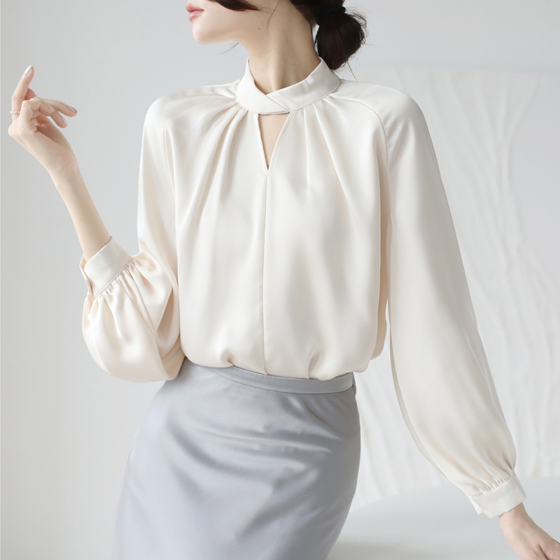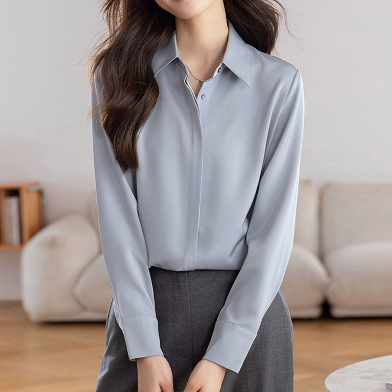 Temperament commuting new pure color professional dress sleeve women's shirt