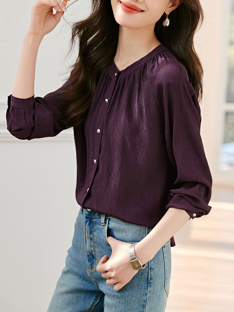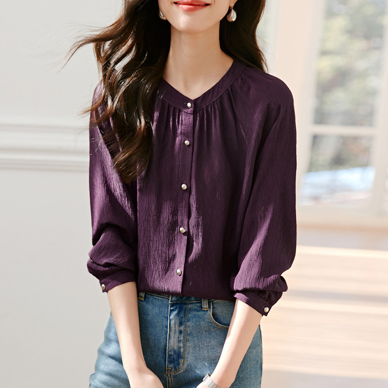 Texture sauce purple long-sleeved blouse