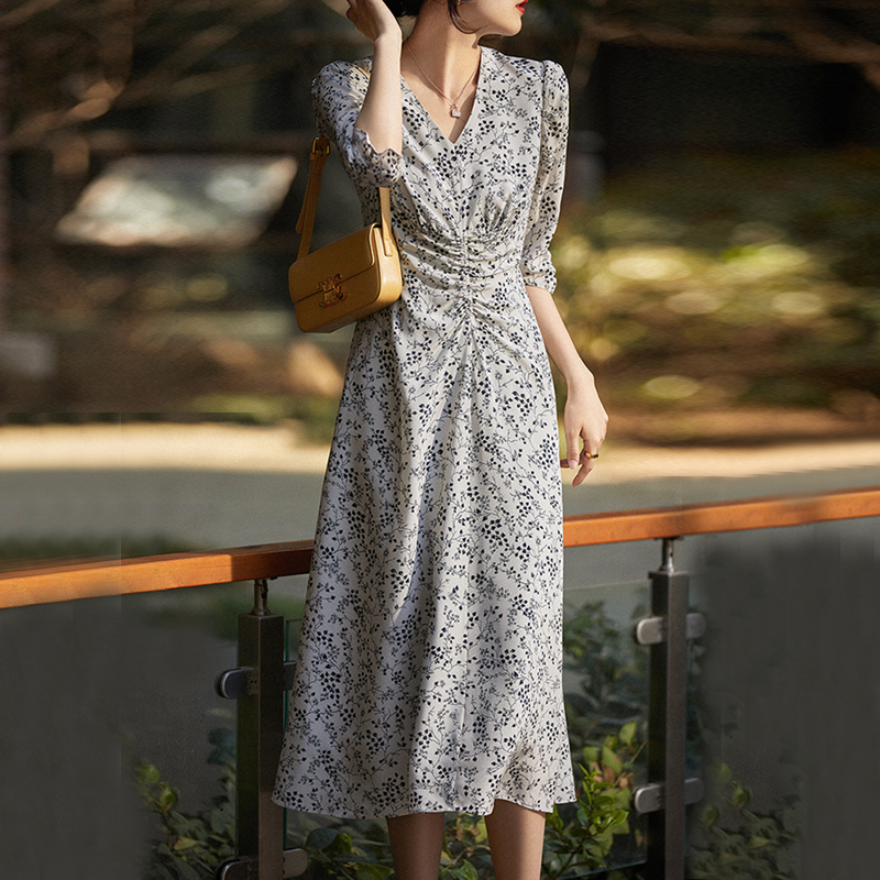 Xianmei V neckline waist color dress
