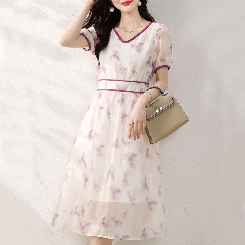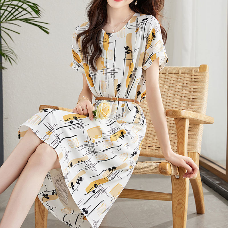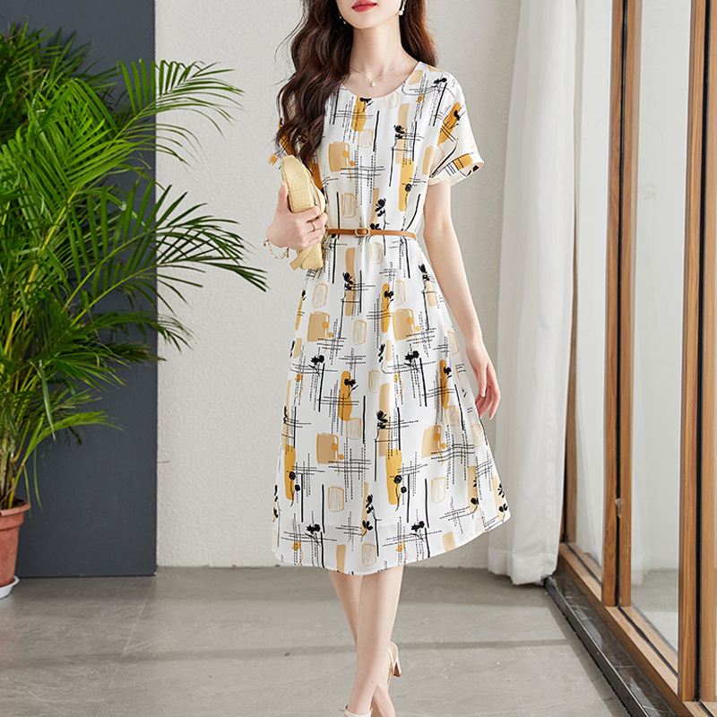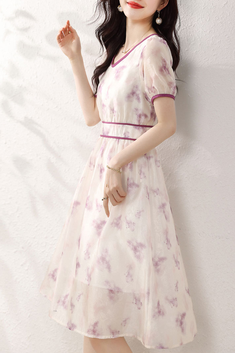 Artistic color printed short-sleeved dress