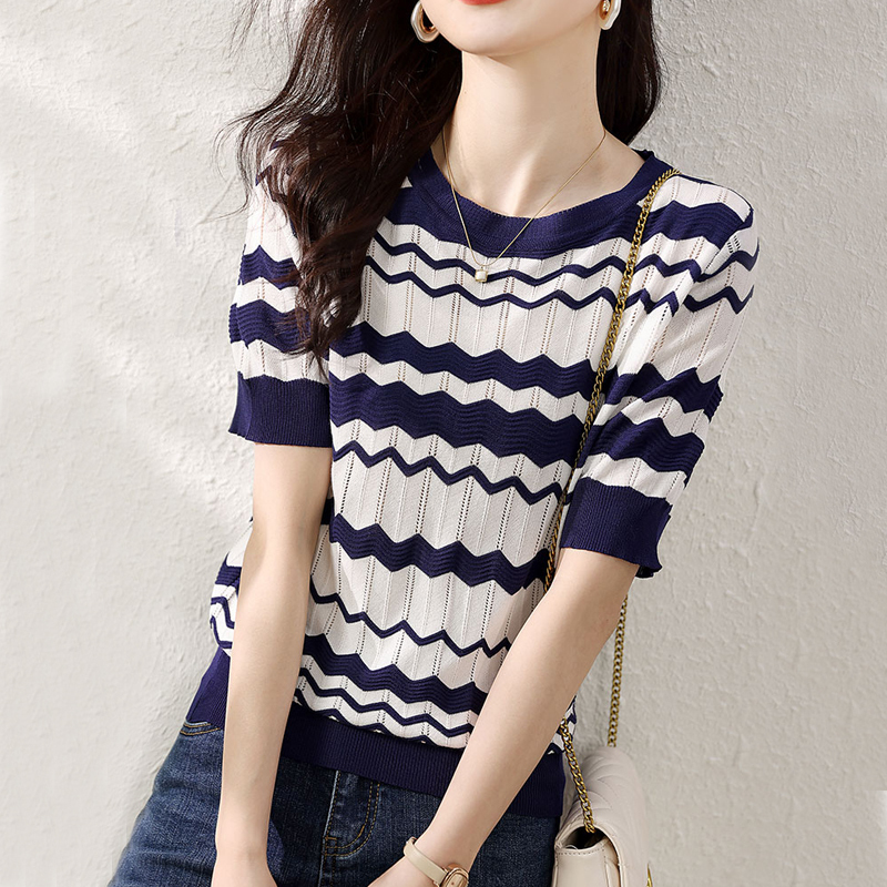 Summer simple big U-neck short-sleeved women's knitted t