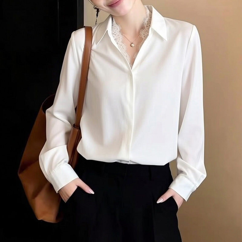 Lace stitching elegant white commuter new spring sleeve blouse