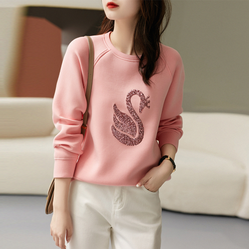 Design sense three-dimensional swan embroidered piece new ladies' sweater