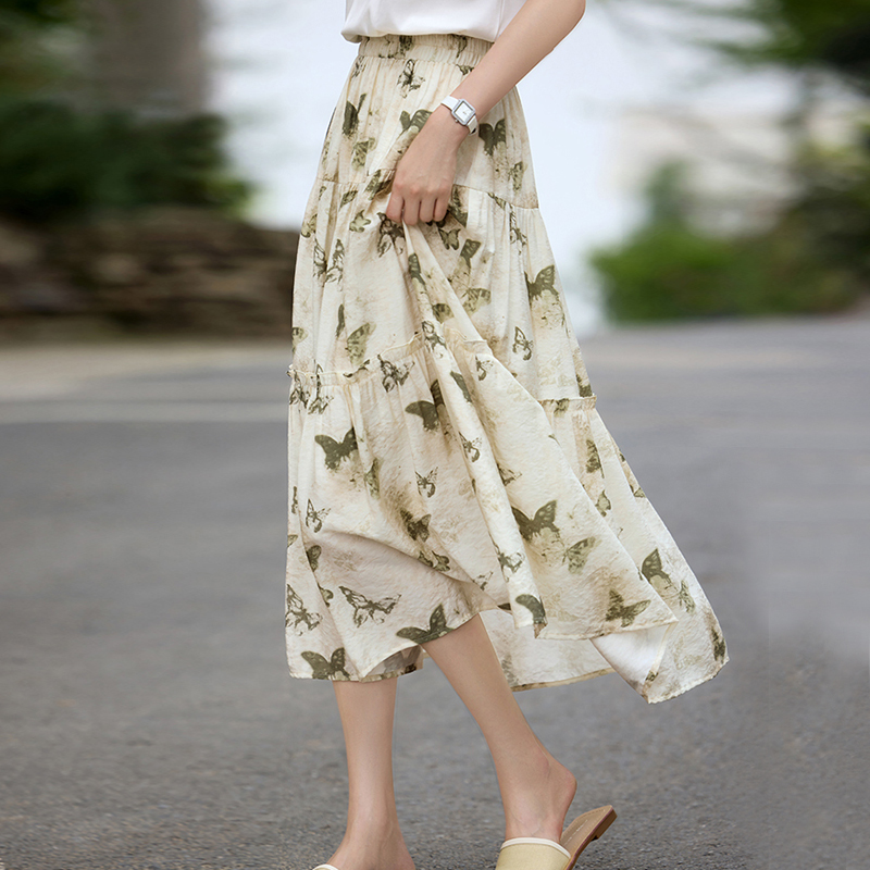 Butterfly pattern printed A-line skirt mid-length skirt