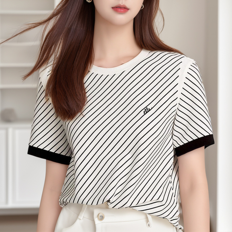 Chic design, oblique stripe short-sleeved women's t-shirt top