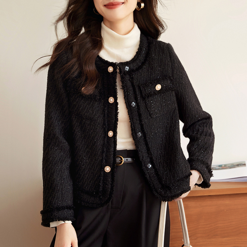 French tassel short black temperament women's coat top