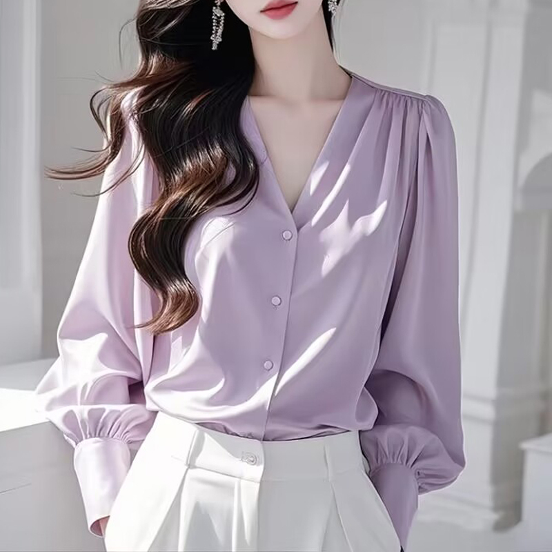 Purple V-neck elegant new commuting sleeve women's shirt