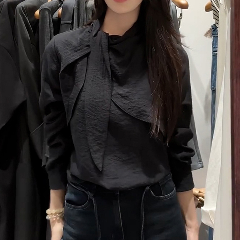 Elegant and beautiful black bow tie pullover top sleeve blouse