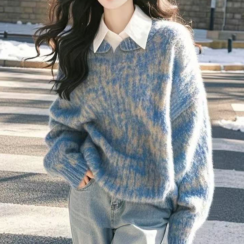 Blue smudge, lazy, high-end pullover autumn and winter sweater