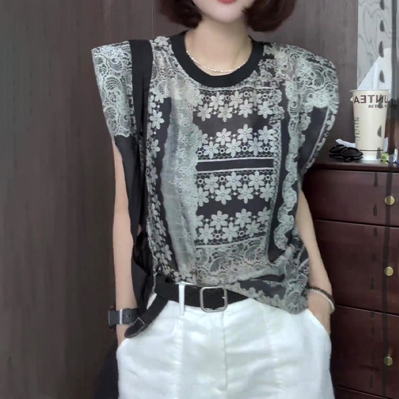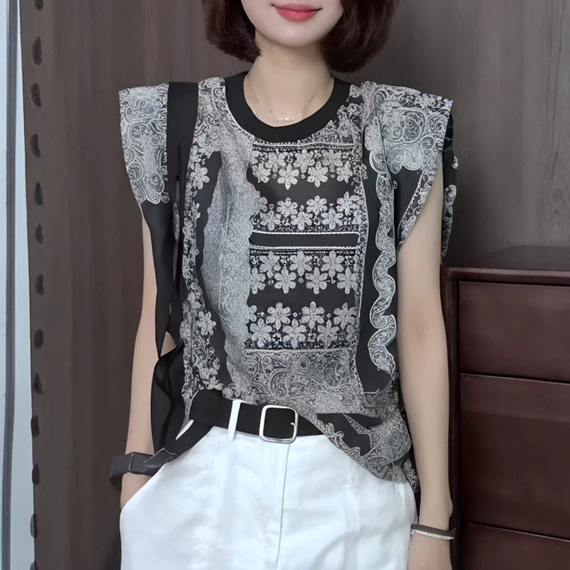 Design retro printed pullover summer new blouse