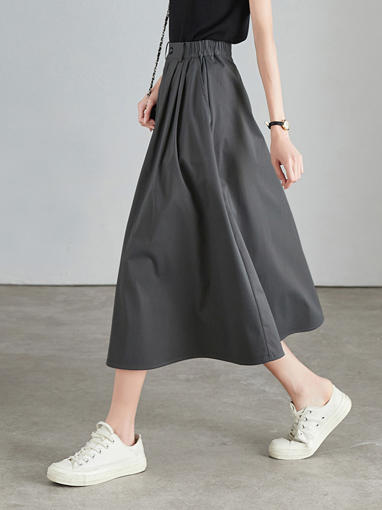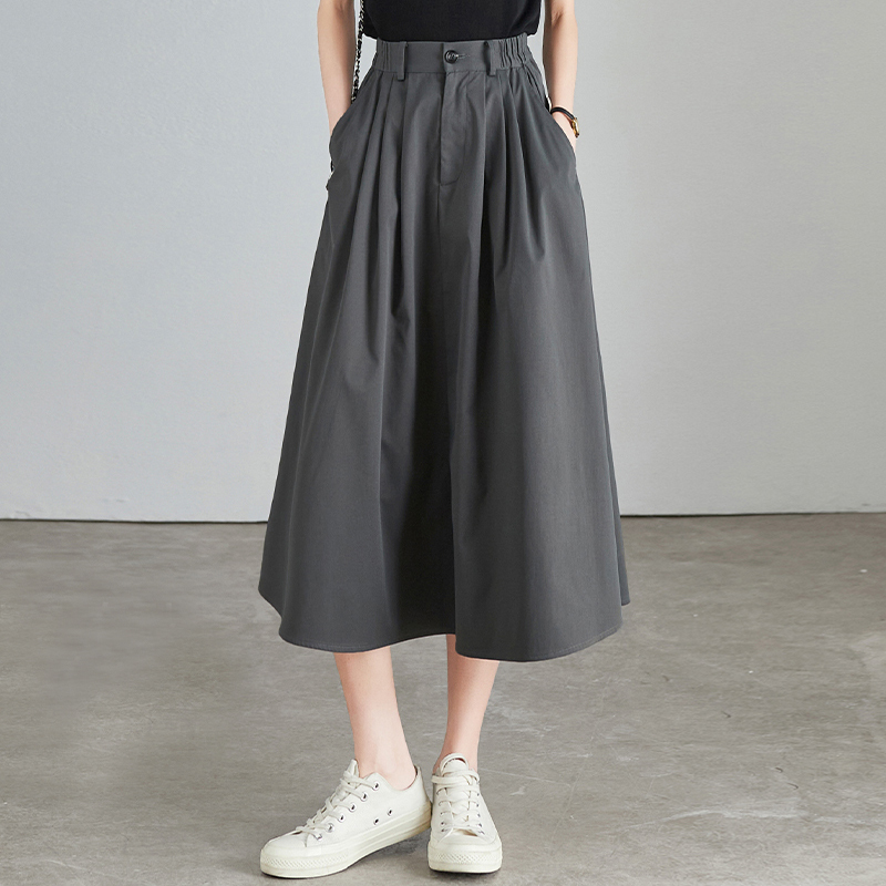 Loose waist, medium-length umbrella skirt, women's A-shaped skirt