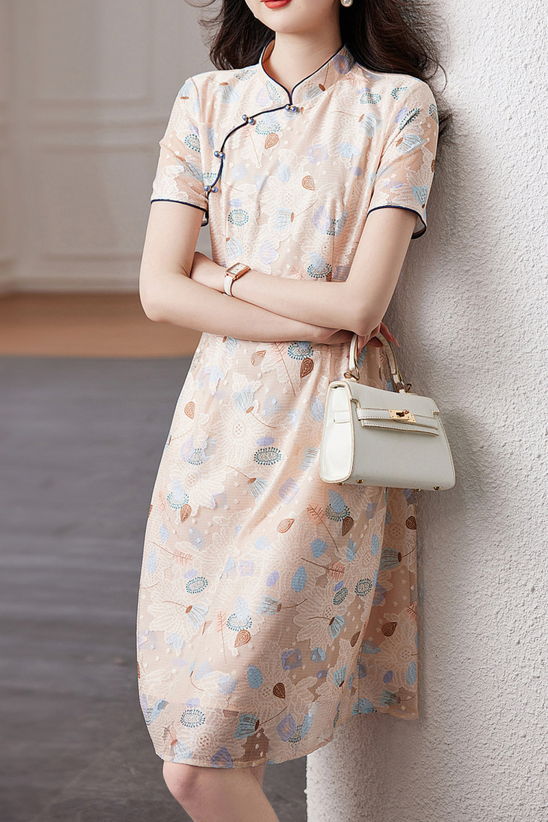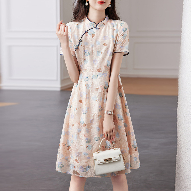 Elegant national style cheongsam flower and color slim dress