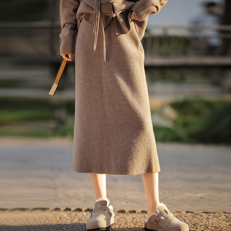 Half skirt autumn winter buttocks medium length knitted half skirt