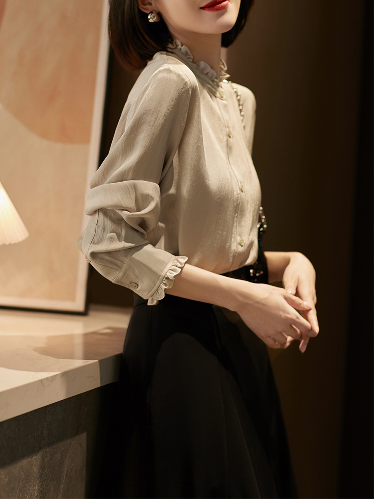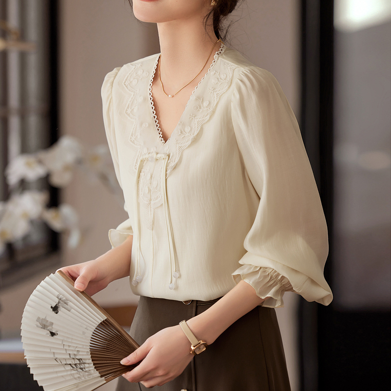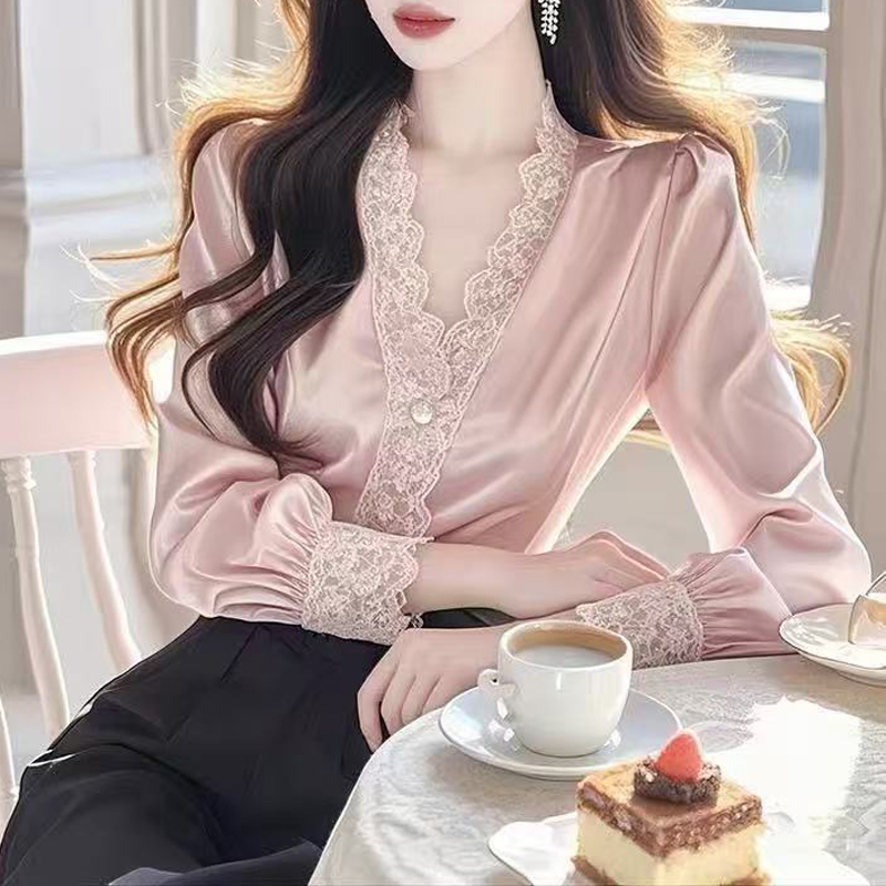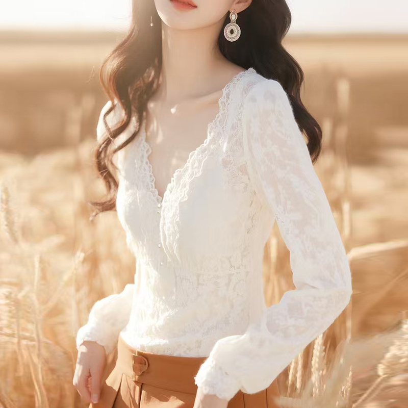 French age-reducing lace collar spring and autumn women's new shirt
