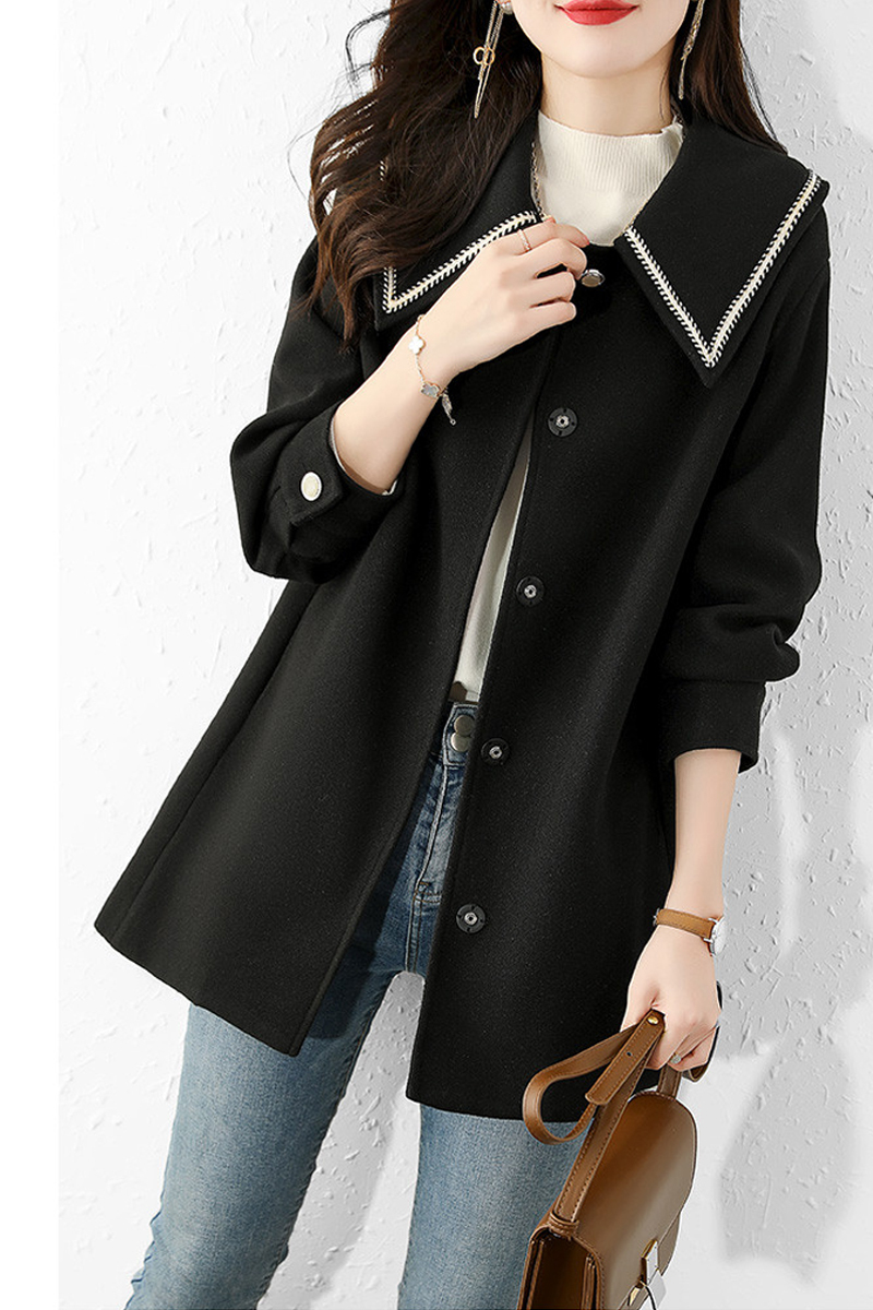 Contrast sharp lapel black medium and long women's coat