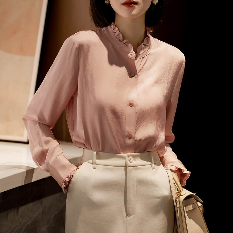 Aging petal collar solid color long-sleeved shirt