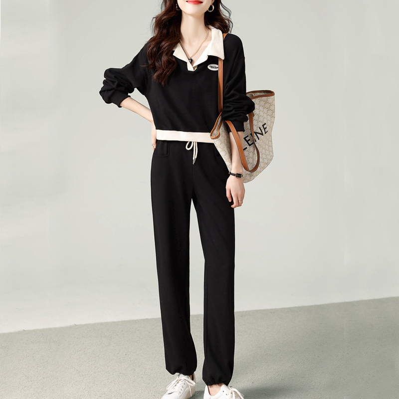 Contrast-color splicing fake two-piece gray autumn and winter women's sweatshirt