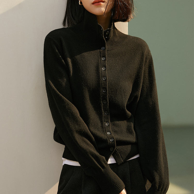 Commuting elegant black small stand-neck knitted cardigan sleeve knitted sweater
