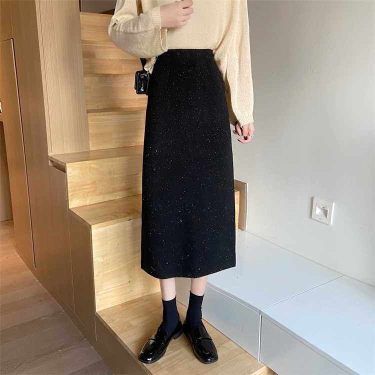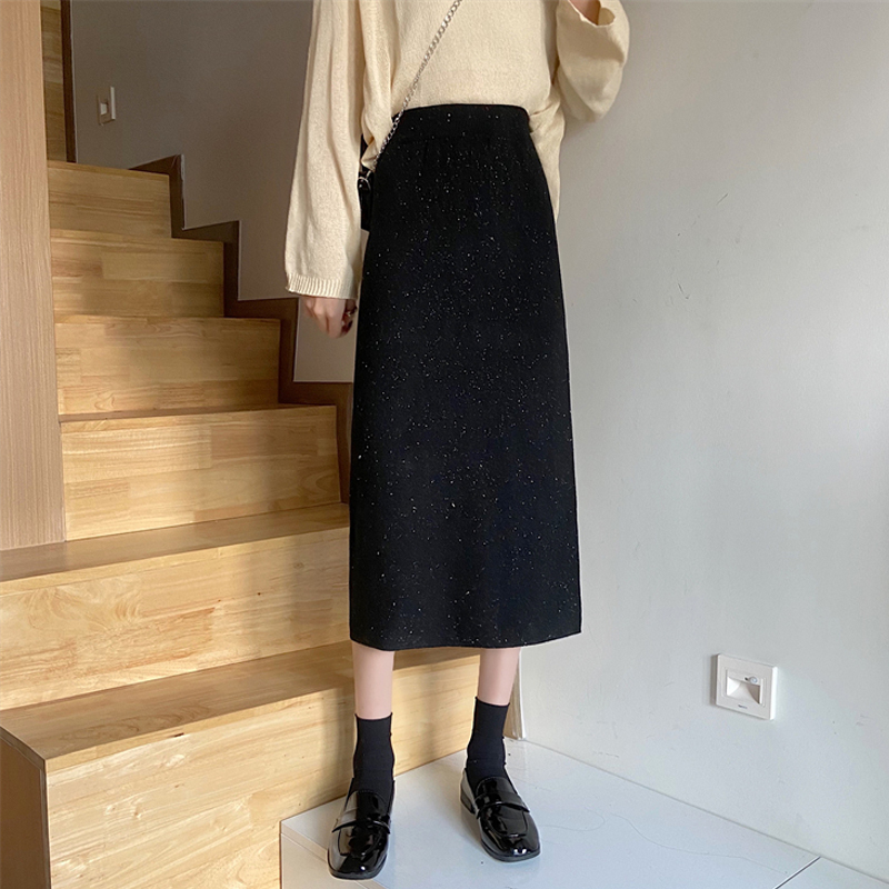 Corduroy medium-long back forked hip half skirt