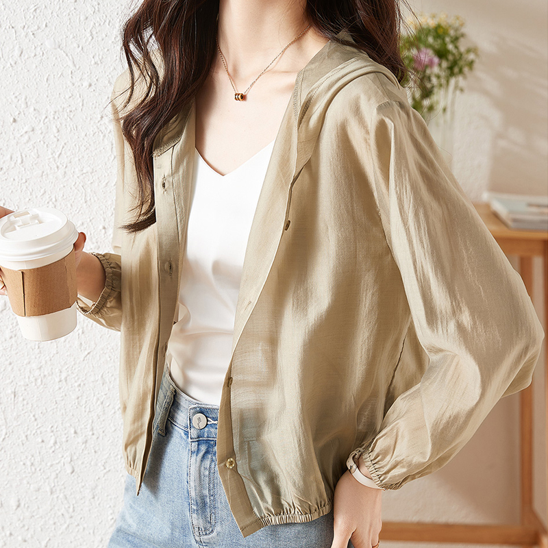 Khaki, hooded, sunscreen, thin jacket.