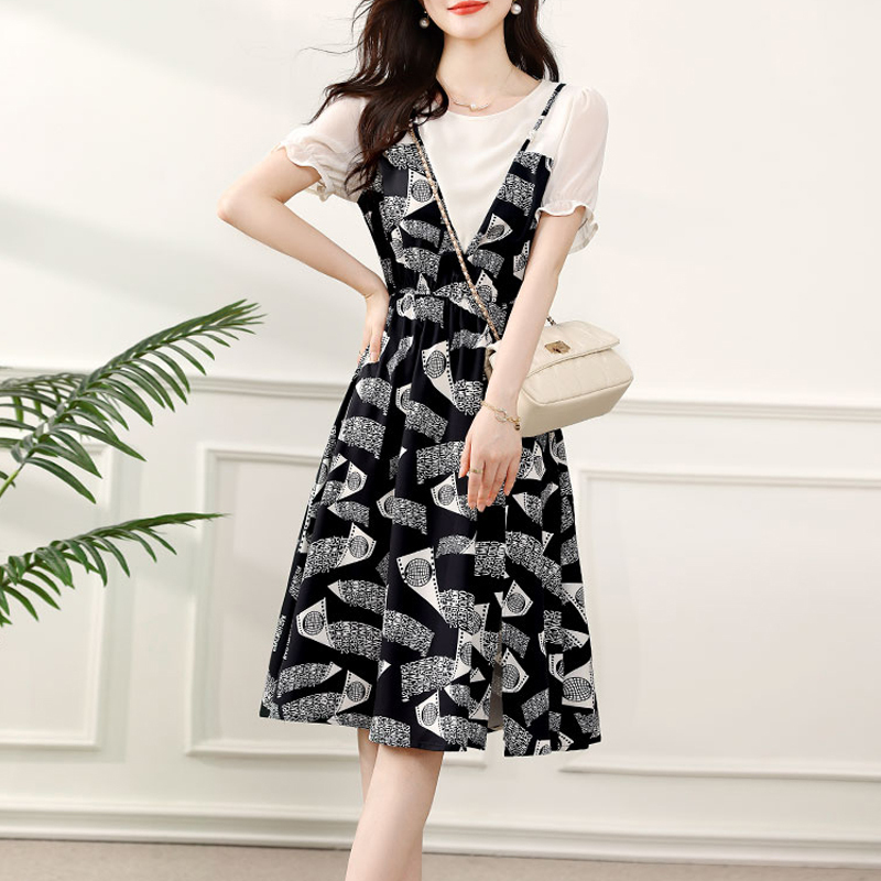 Temperament commuter belt waist short-sleeved shirt skirt