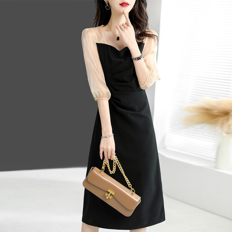 A thin dress with a French color square collar.