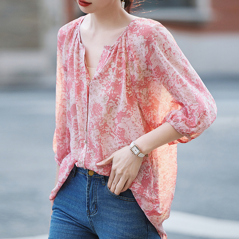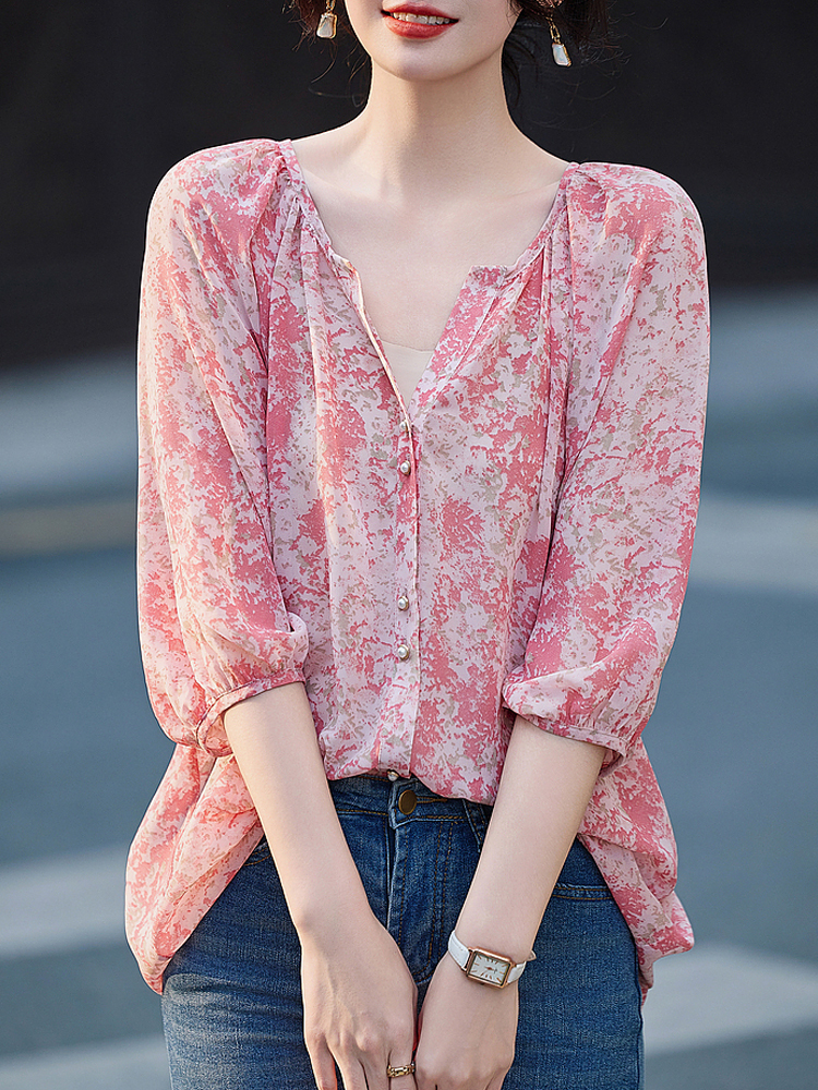 French romantic pink small V-neck shirt