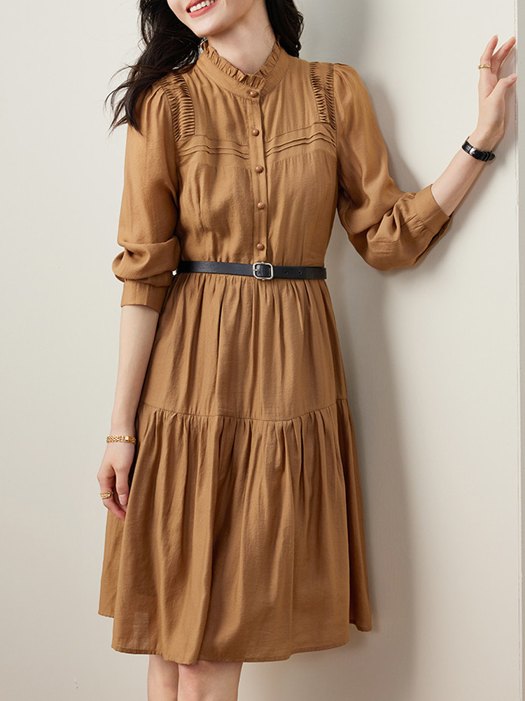 Temperament vertical collar belt commuter dress