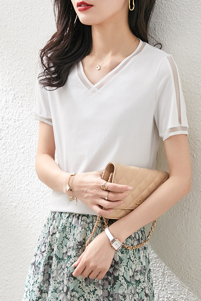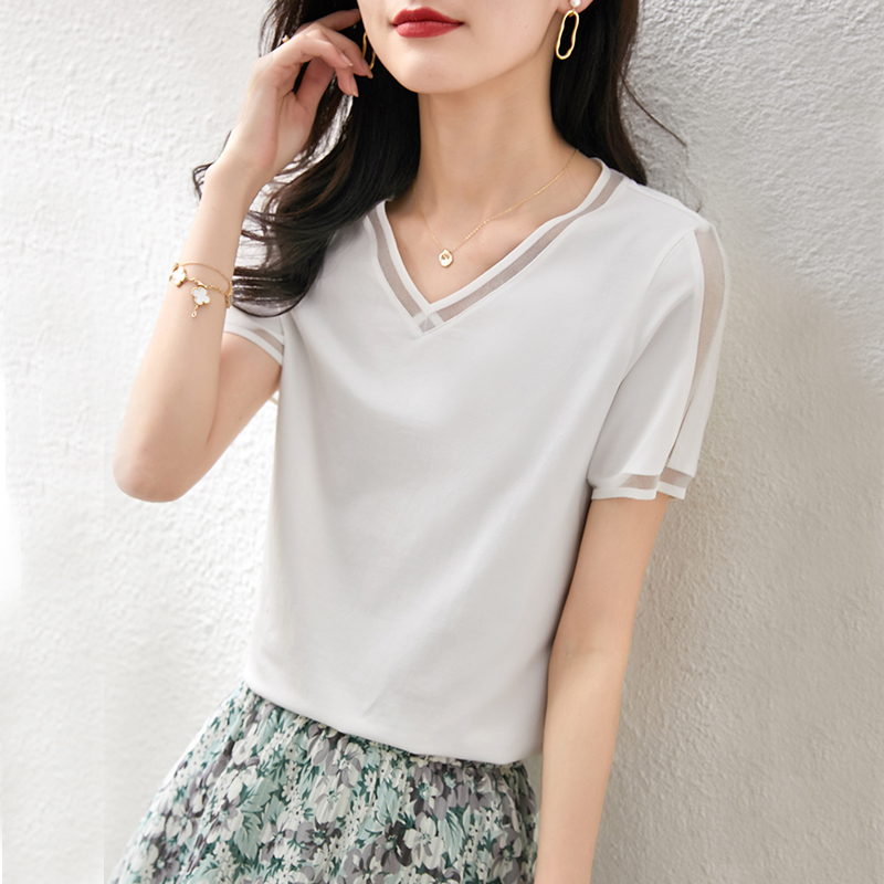 Cool temperament V-collar short-sleeved T-shirt blouse