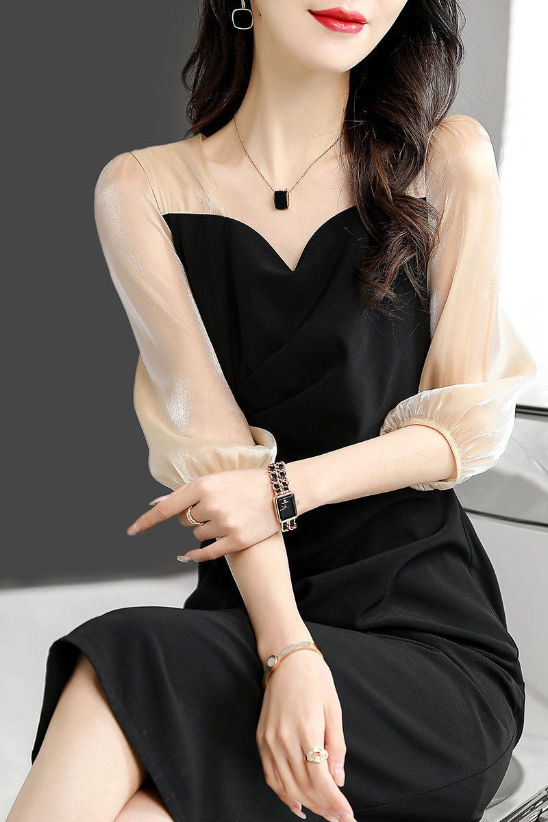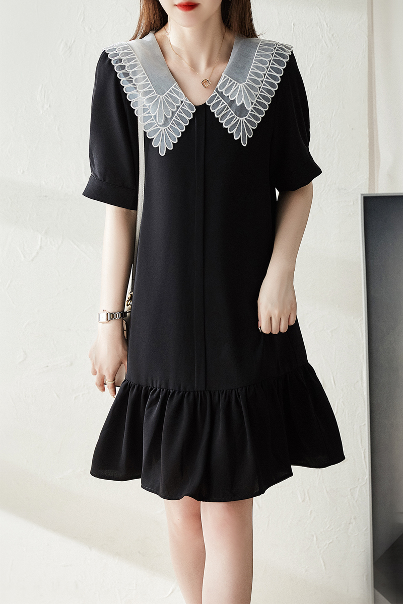 Design sense collision color doll collar Hepburn style black dress