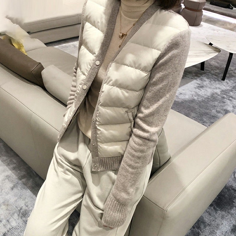 Knitted stitched V-collar warm short cotton jacket