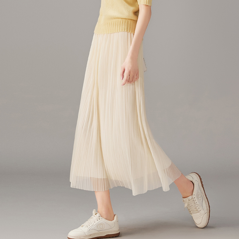 slimming fine pleated mesh mid-long skirt