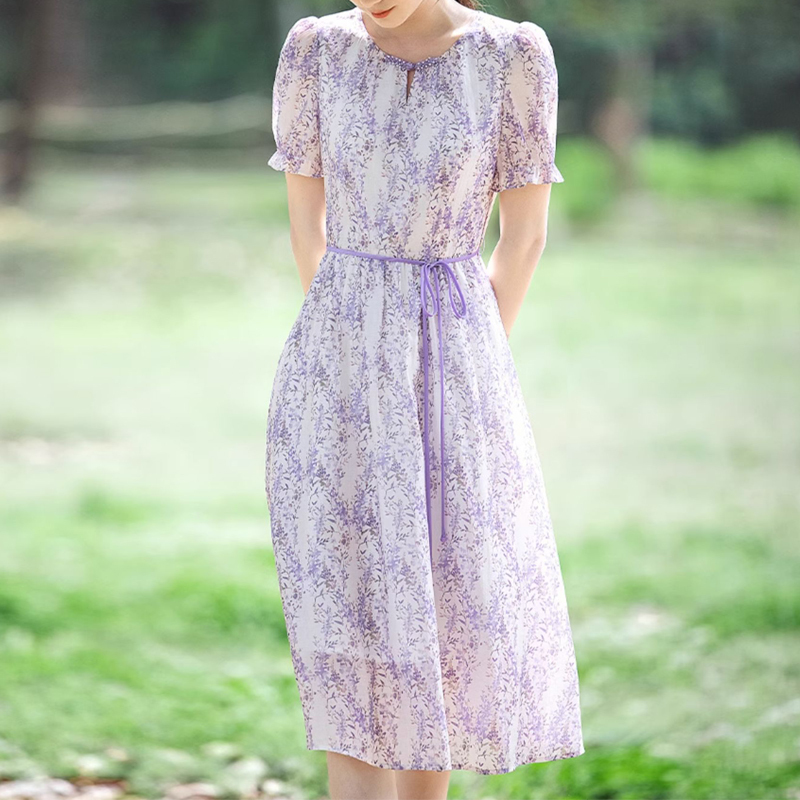 Light, luxurious and elegant lace-up short-sleeved dress